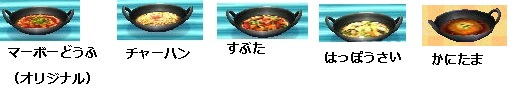 | ちゅうかなべ | 160 | <メニュー> ・マーボーどうふ ・チャーハン ・すぶた ・はっぽうさい ・かにたま | 【 | ||