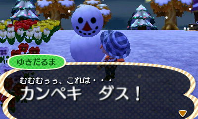 広場でしずえから「あかオニのおめん」と「あおオニのおめん」のどちらか選んだ方を貰える(0時以降は役場へ戻ってしまう)。