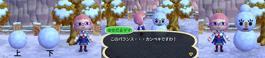 わざと不格好に作りたい場合、胴体を作りたい雪だるまの大きさにし、頭を極端に大きくして作ると作りやすい。