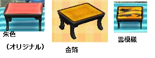 | こたつ | 120 | <布団> ・青い布団 ・ピンクの布団 ・赤い布団 ・茶色い布団 ・青ストライプの布団 ・チェック柄の布団 ・毛布付きの布団 | 【 | ||