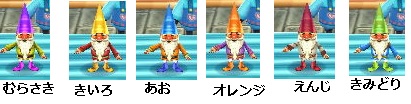 | ノームのおきもの | 338 | <ノームの色> ・あかいぼうし ・むらさきぼうし ・きいろぼうし ・あおいぼうし ・オレンジぼうし ・えんじぼうし ・きみどりぼうし | 【 | ||