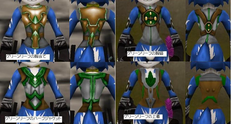Lv34~36?程が落とす緑装備シリーズ(画像は手装備無し)