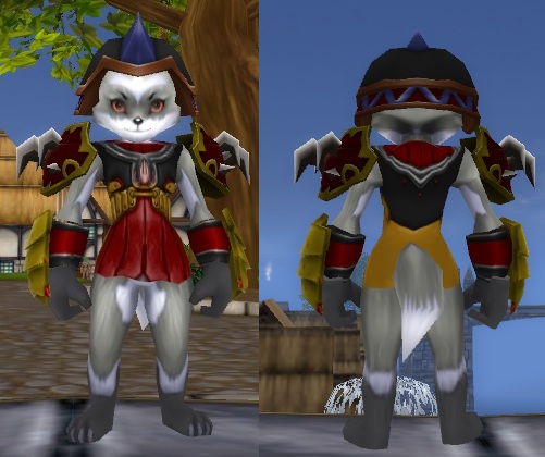 Lv19、左は闇術師のレギンスのみ(何故か胸までカバー)、