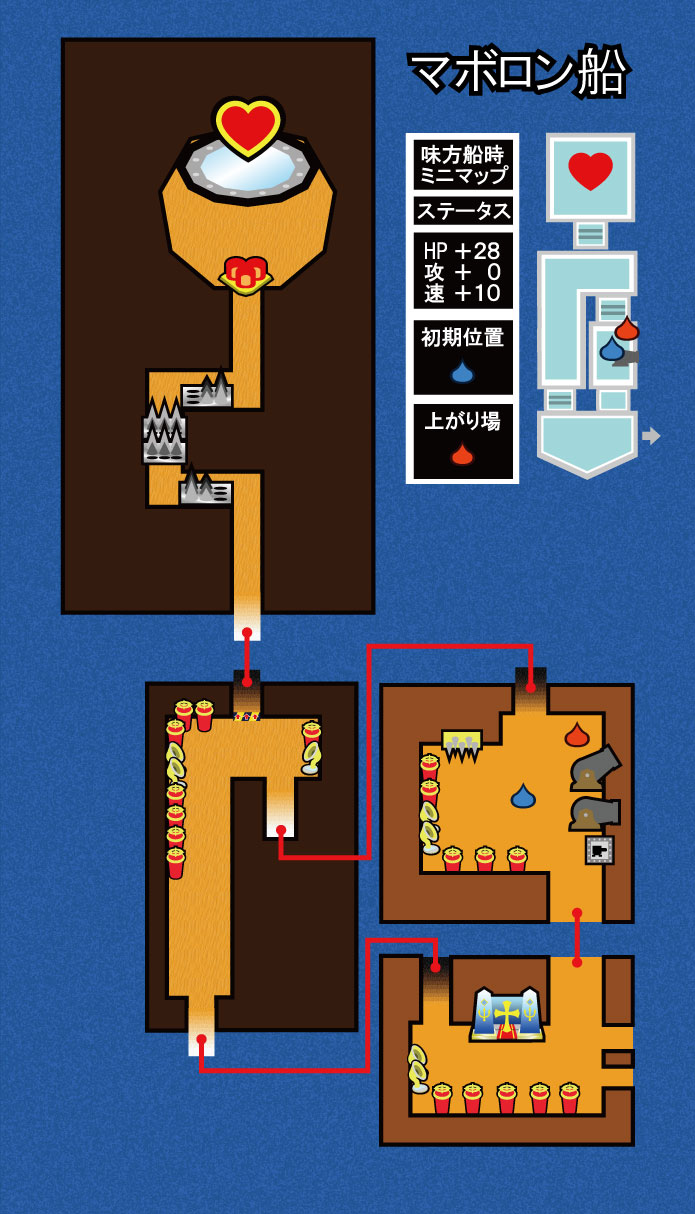 (甲板が狭い。大砲付近が一本道なので邪魔な侵入者を撃退しやすい 【ハッピー船☆】はすれ違い通信(期間限定)。 現在両船ともすれ違い通信でしか入手ができない)